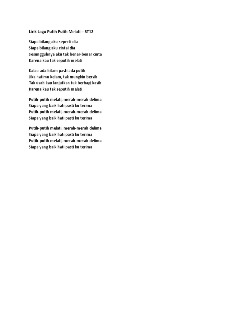 Lirik Lagu Putih Putih Melati St12 Pdf